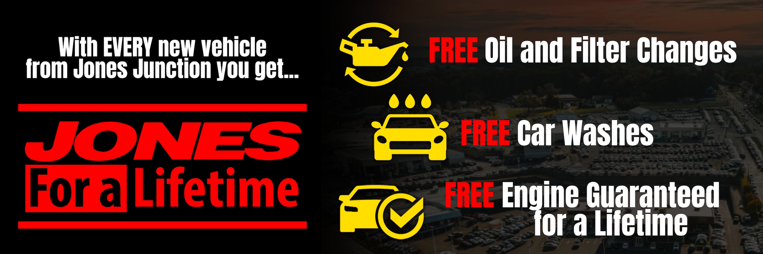 You’ll never pay to change your vehicle’s oil or replace the oil filter as long as you own your JONES car or truck. Diesel engines excluded.